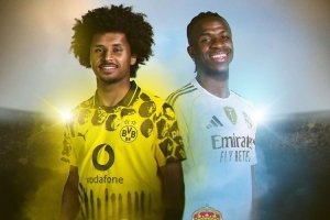 多特将在1/4决赛中对阵皇马,多特官方社媒晒出海报预热比赛,内容为阿德耶米pk维尼修斯。