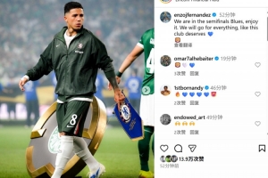 恩佐也在个人社媒晒出本场照片,配文写道:“我们晋级半决赛!蓝军球迷们享受这一刻吧,我们会为胜利竭尽全力,以配得上这支俱乐部。”